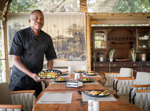 Each safari tent features a spacious private deck overlooking the river, separated from wild Africa by an almost invisible insect proof mesh. Designed with a harmonious blend of natural wood, classic canvas and contemporary elegance, the tents offer twin or queen size beds dressed in luxurious linens, private bathrooms with showers, flushing toilets and hot and cold running water. With generous space, abundant natural light and standing fans for ventilation, the result is effortless tented chic and safari perfection.