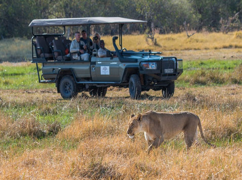 Activities: Activities include game drives (morning and afternoon/evening), night drives, and mokoro (dugout canoe) trips. Guests can also enjoy massages on their decks.